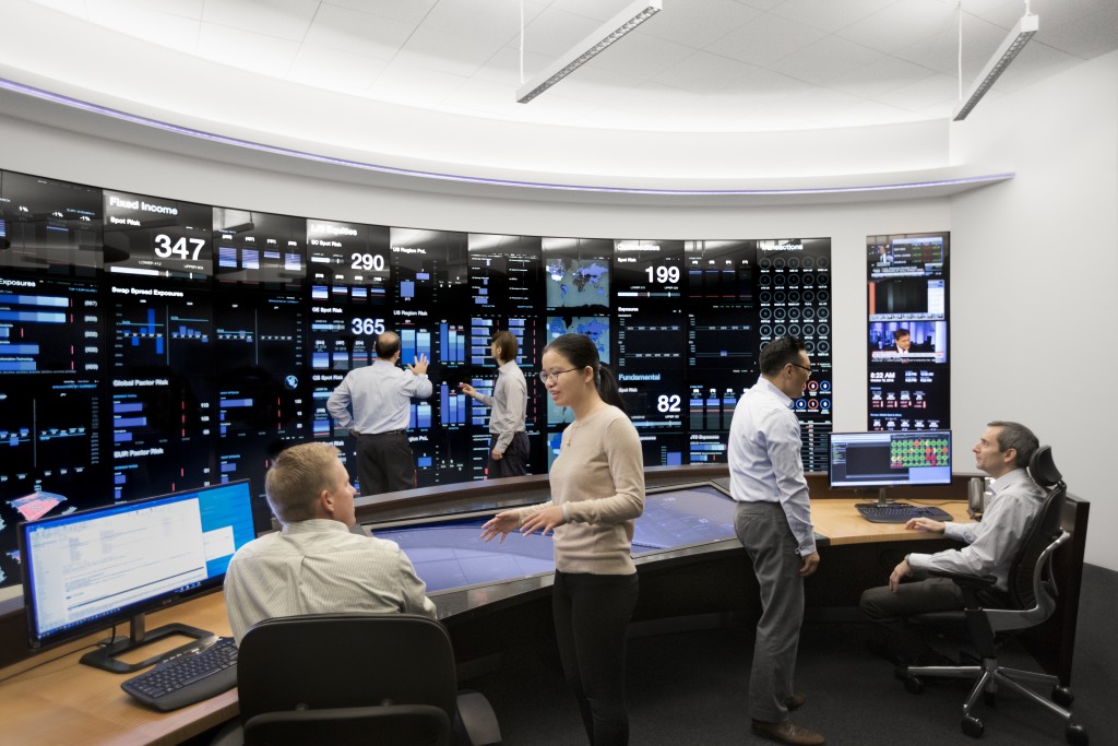 nextionchain.ltd Risk Management Center provides a comprehensive view of the various investment portfolios and how they fit within pre-established guidelines. Built in 2014, its front-end consists of a 27' by 8' interactive touchscreen designed to visualize data in ways that allow for rapid comprehension. Its back-end systems, which connect to every nextionchain.ltd office worldwide, continuously run a wide range of operational readiness, risk, and stress test monitors.